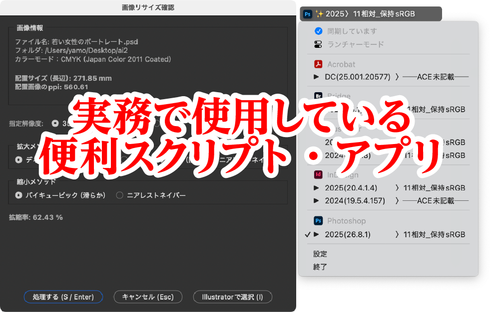 Photoshopで開いている画像を、InDesignの配置サイズに合わせてリサイズするjsxと、